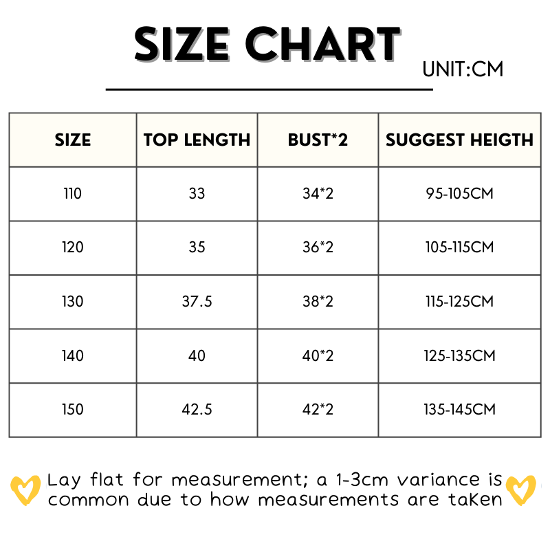 T34B 尺码表 110 150