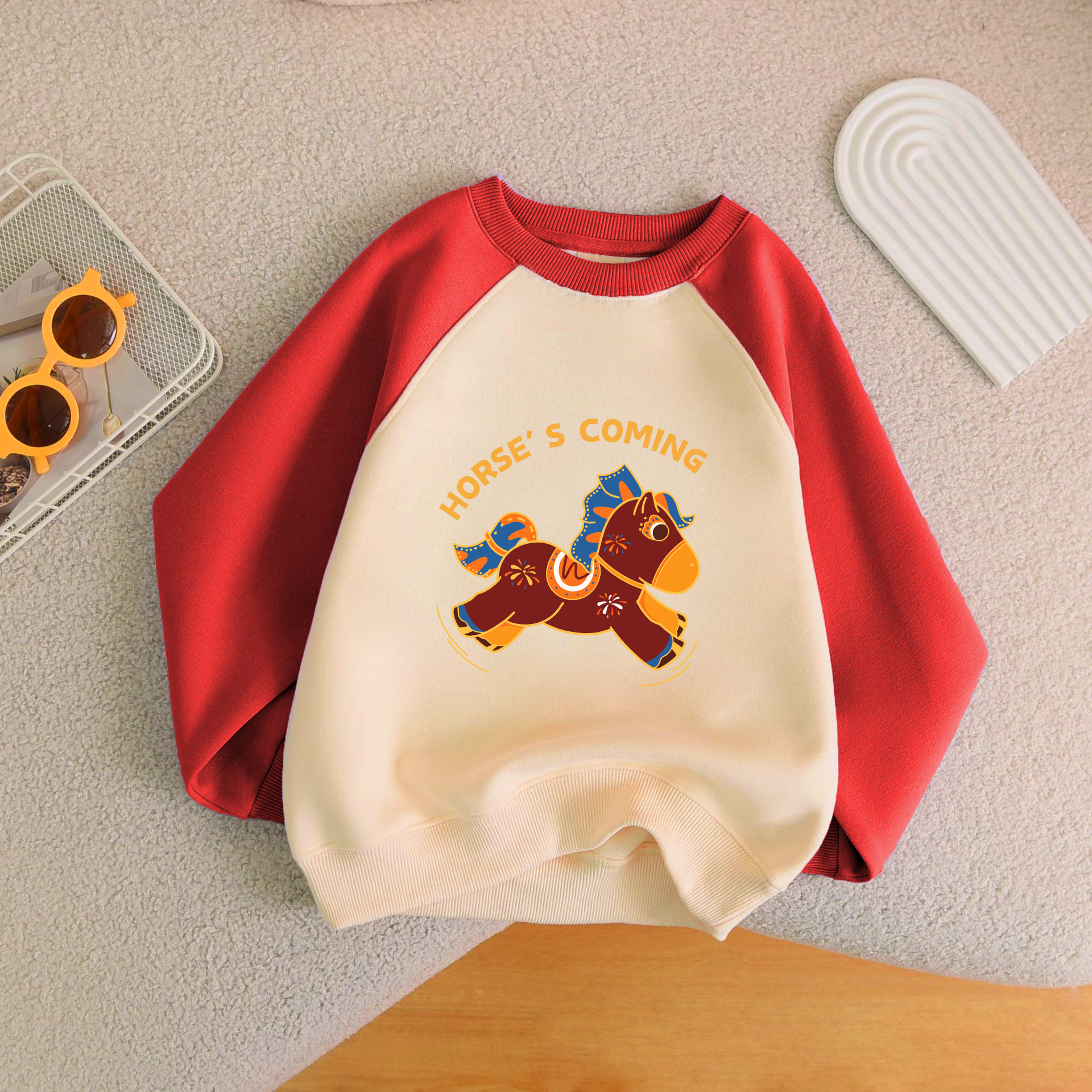 F1672 T14 卫衣 红白 不带珍珠