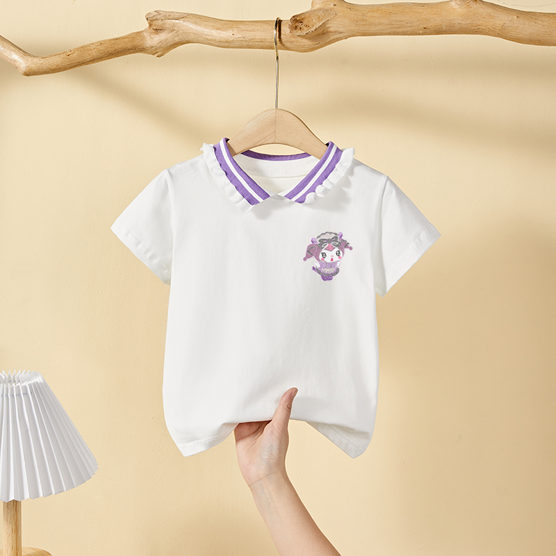 F125 T25 紫领子白色T恤